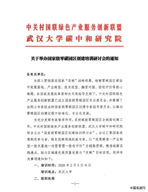 关于举办国家级零碳园区创建培训研讨会的通知