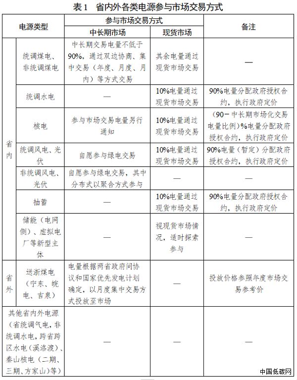 为满足全省工商业用户市场内购电需求,确保市场供需平衡,省内外各类电源参与市场方式如下: