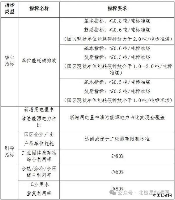 核心指标:零碳园区建设必须达到的目标,是园区验收评估的首要条件,按照园区年综合能耗规模分为两类。达不到核心指标要求的园区,原则上不得申请验收。